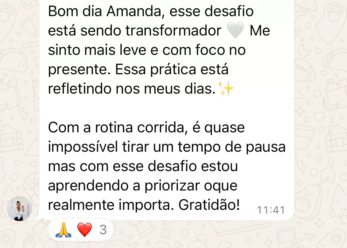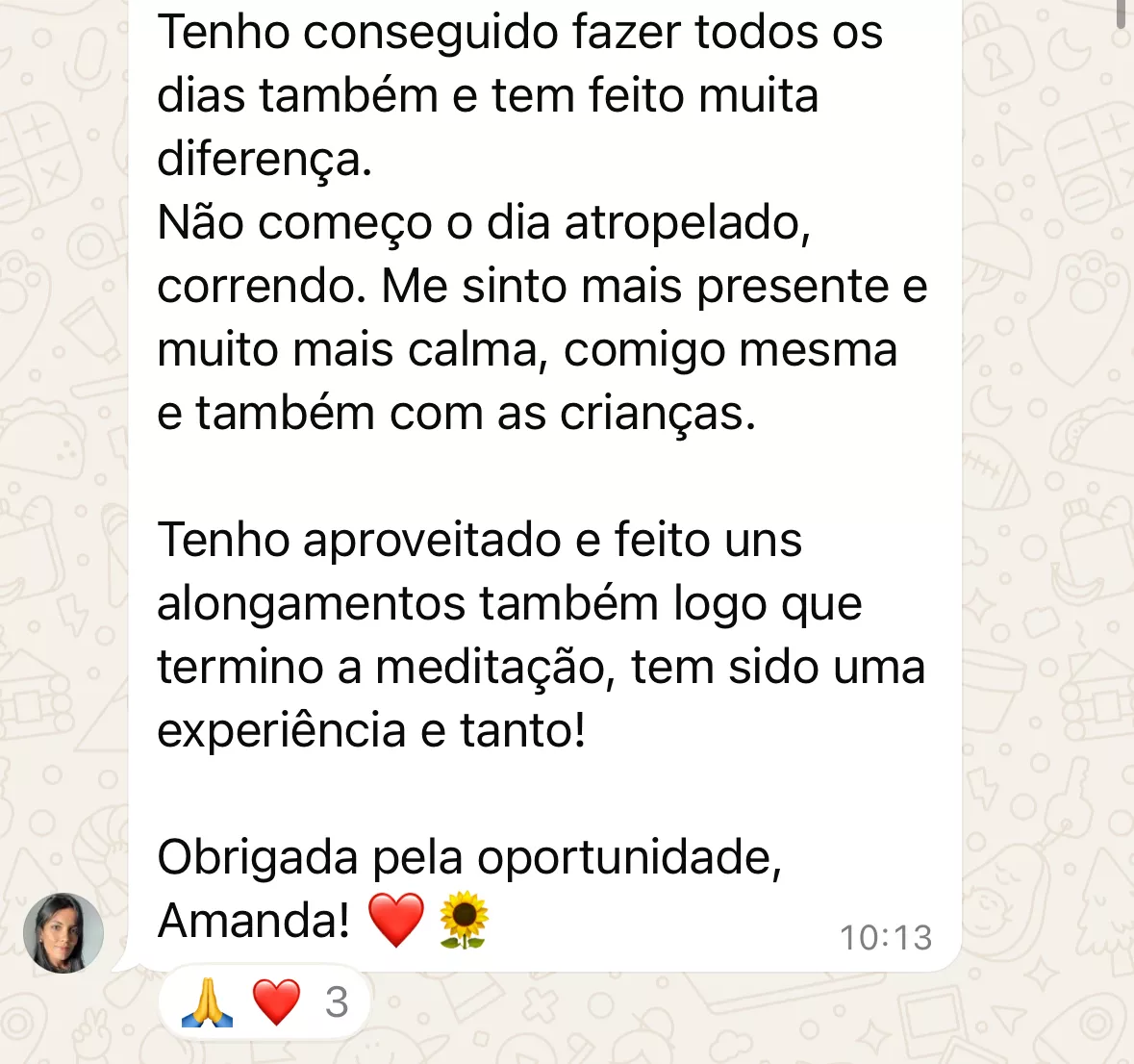 Se você está buscando mais equilíbrio, clareza e presença no seu dia a dia, vem comigo. Vai ser uma alegria te guiar nessa jornada. Agora, é a sua vez.