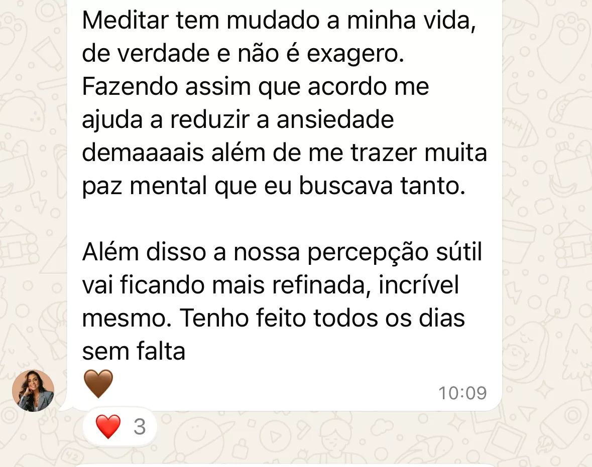 Foi a meditação que me ajudou a reencontrar meu centro — e, desde então, meu propósito tem sido compartilhar esse caminho com outras pessoas.